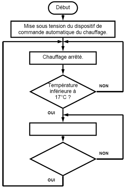 Si la température est inférieure à 17°C, le chauffage est mis en marche.Si la température est supérieure à 20°C, le chauffage reste arrêté.